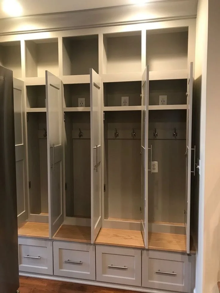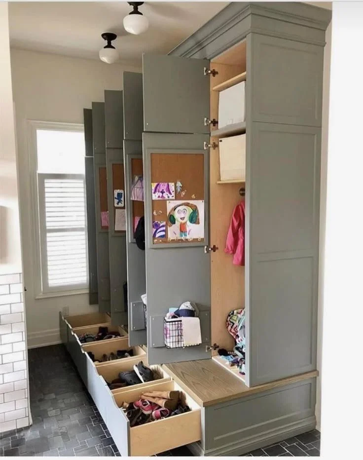 Individual Storage Zones Create designated spots for each family member with their own hooks and storage cubbies. This prevents the "whose backpack is this?" morning scramble.